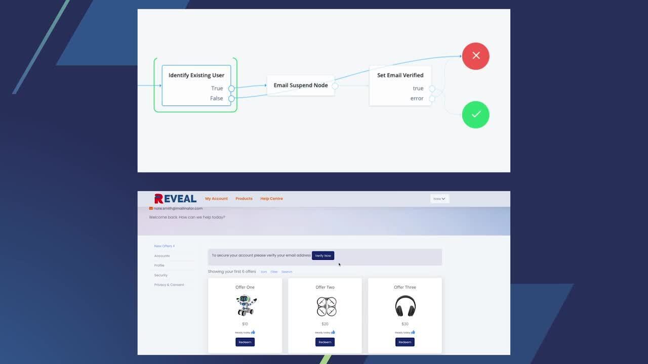 See ForgeRock's flagship orchestration capability, commonly called trees. It's a no code orchestration engine designed to help you perfect identity journeys, such as how a login or password reset will work.